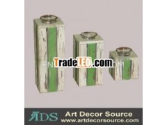 White and green wooden candle holders